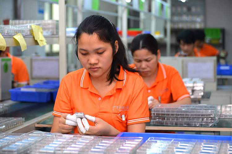 男女一起努力生产豆浆